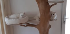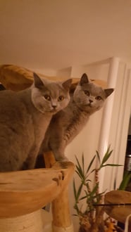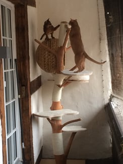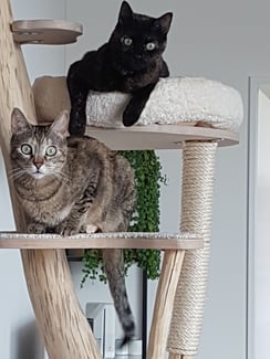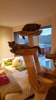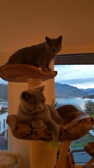Die Britisch Kurzhaar Katzen sind happy mit ihrem neuen Baum.